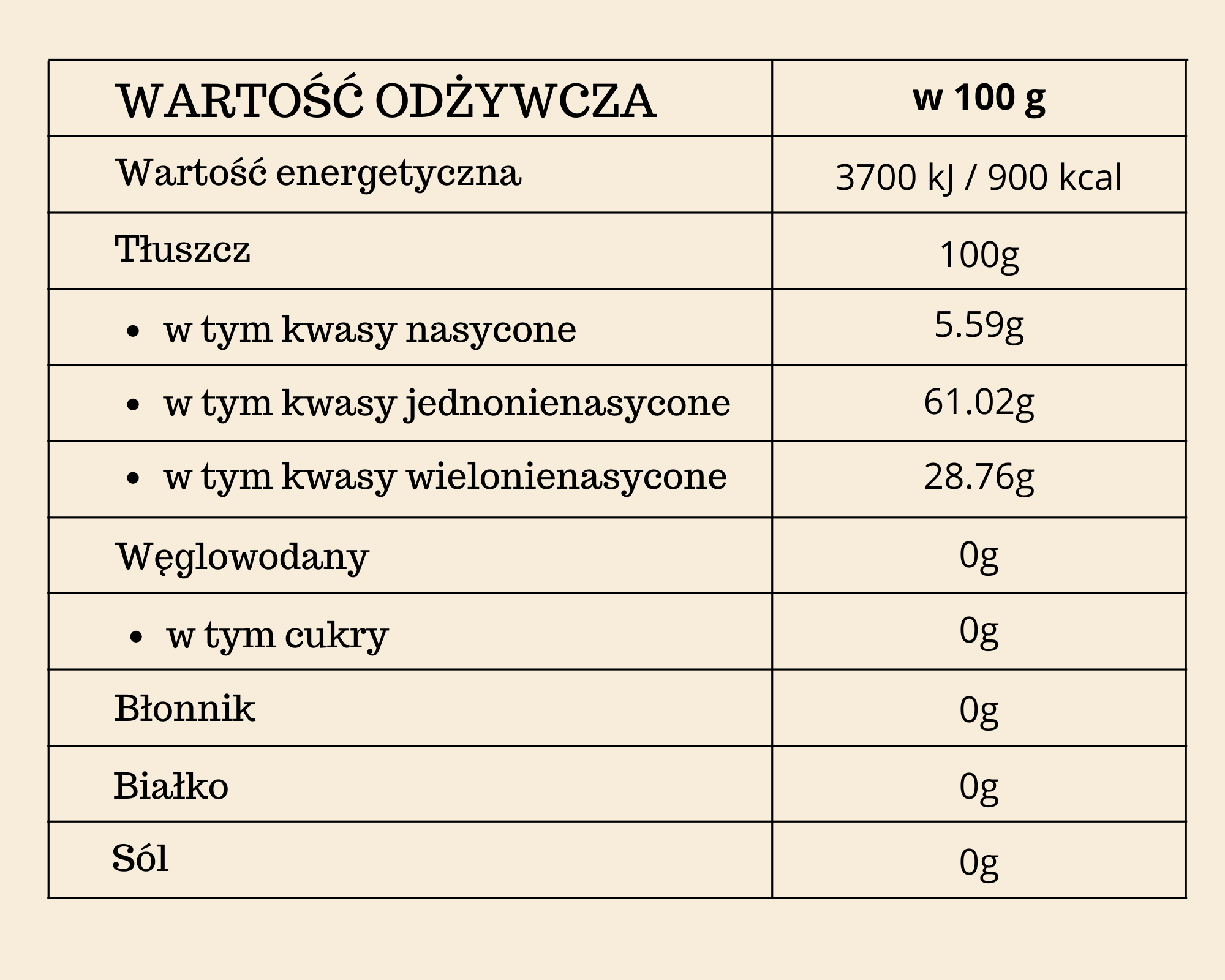 - Tłoczony na zamówienie - otrzymujesz zawsze świeży olej!
