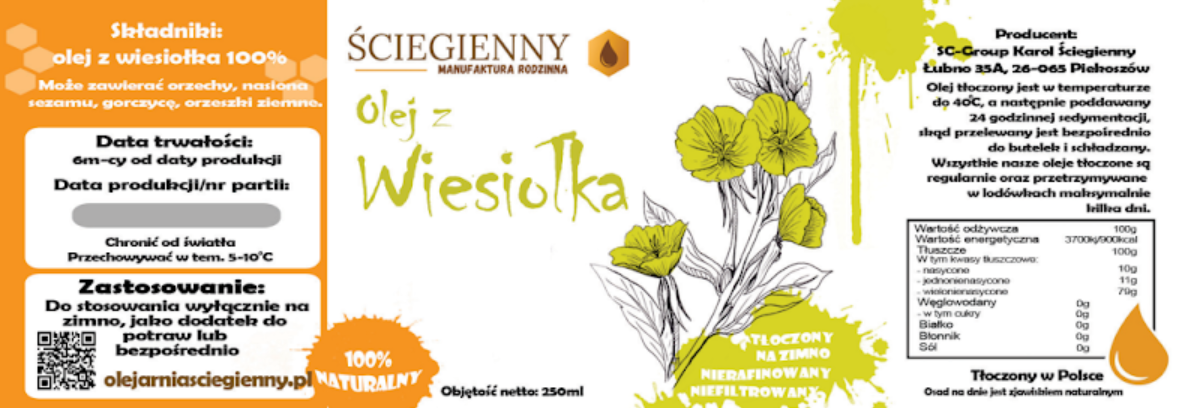 Olej z wiesiołka od Olejarnia Ściegienny to naturalny smak tradycji i wyjątkowa jakość. Zamów go już dziś bezpośrednio przez naszą stronę internetową lub skontaktuj się telefonicznie pod numerem 730 547 945, aby uzgodnić najdogodniejsze warunki dostawy. Pomożemy Ci wybrać produkt najlepiej dopasowany do Twoich oczekiwań.